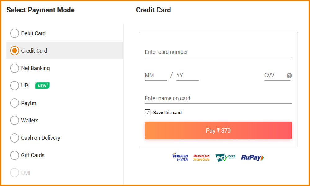 • 1. What are various modes of payment available? We accept multiple modes of payment such as Credit Cards, Debit Cards, ATM cards, Netbanking, Cash On Delivery (COD). Besides these payment modes, you can also pay using CluesBucks. Currently, we do not accept international cards. You may glance through the list below and choose to pay through your preferred medium.